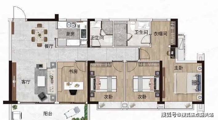 💥大三房卧室配置,4开间朝东南,13米超大开间