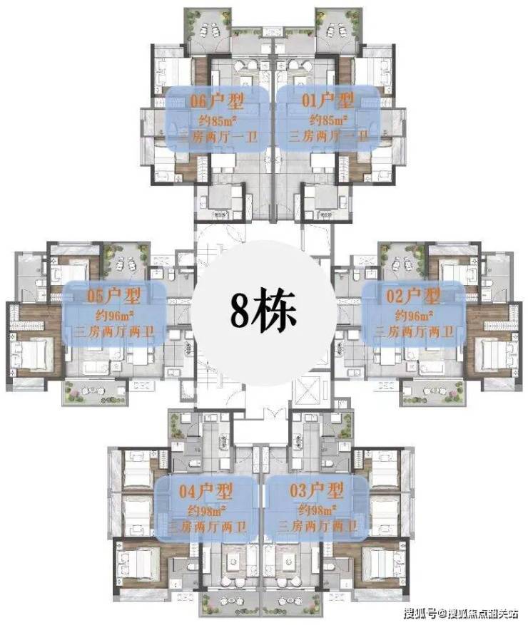 项目提供建筑面积约85至139平方米三至五房产品,涵盖全家庭需求。户型方正实用,南北通透设计保障采光和通风,满足三代同堂或二胎家庭需求。空间布局灵活,客厅与餐厅一体化设计,最大化生活动线流畅性。部分户型配备超大阳台或观景窗,提升居住舒适度。精心设计的户型兼顾美学与功能,实现居住体验与视觉享受统一,为购房者提供实用且高品质的居住选择,同时保证每户的空间利用率和舒适性。