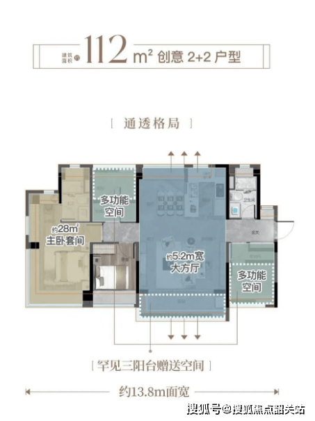 112户型:大四房设计,三阳台赠送,拓延更大生活尺度,瞰江视野升级。
