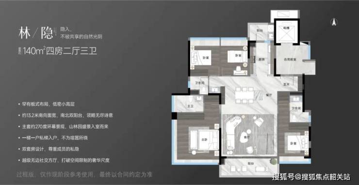 除了大平层户型外,越秀观樾还将加推中轴位10#建面约140㎡的户型,这一户型设计同样出色,双套房+对流双阳台设计,南北向都能拥享园林景观。无论是大户型还是小户型,越秀观樾都提供了多样化的选择,以满足不同购房者的需求。