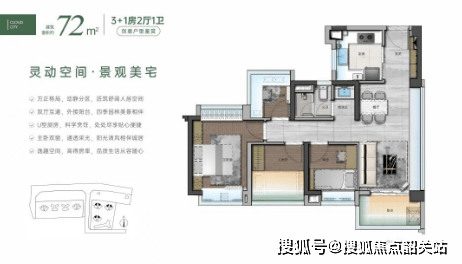 超高使用率:72平方米做四房,极大提高了空间利用率。