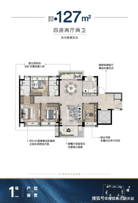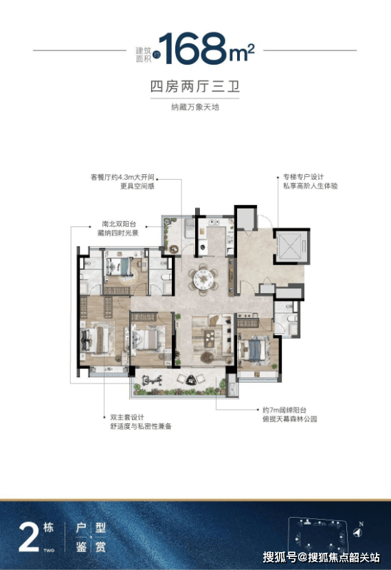 项目主推建面约104-168平方米的全四房户型,采用两梯两户或两梯三户的设计,降低了梯户比,增强了住户的隐私感。更低的公摊面积使得户型更加实用,提高了居住的舒适度。楼间距达到约200米,确保了每户都能享受良好的视野和充足的阳光。