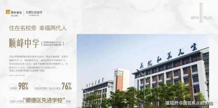 小区门口一路之隔即省一级公办名校顺峰幼儿园,顺峰小学和顺峰初级中学,附近还有大良实验小学,顺德本真未来小学,李兆基中学等;满足孩子3到18岁的全龄段优质教育。地铁一站即可到达顺德第一中学。