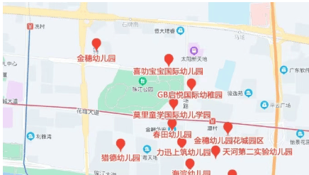 教育资源丰富,广粤尊府自带广粤春田幼儿园,位于三期北侧天桥附近,接送方便。整个凯旋新世界还有 2 所幼儿园。对应的公立小学为广州市天河区第一实验小学,距广粤尊府北门约 1600 米。对应直升初中为天河中学 (花城校区),距小区一期约 800 米,距三期约 1100 米,初中学生上下学较为便利。