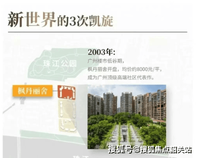 回溯往昔,珠江新城的发展并非一帆风顺,曾面临地价一降再降、开发停滞的困境。1993 - 1995 年,地价从 3500 元 / 平降至 2800 元 / 平仍少有人问津。然而,1997 年新世界中国挺身而出,一举拿下 13 宗共 11 万平土地,成为最早拿地的开发商之一。2003 年非典时期,楼市低谷,全市平均房价约 3173 元 / 平,凯旋新世界一期枫丹丽舍开盘,以约 8000 元 / 平的均价,成为广州顶级高端社区代表作,实现第一次凯旋。2010 年,全球金融危机后,凯旋新世界广粤尊府首开,当天销售超 10 亿,创下广州楼市最高单价记录,实现第二次凯旋。而在今年广州市场冷静,顶豪成交却达巅峰之时,凯旋新世界推出全新一期 —— 广粤观邸,震撼广州顶豪圈,完成三次 “凯旋”。