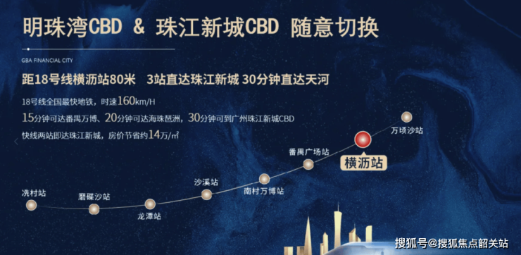 项目的地理位置极为优越,距离地铁18号线横沥站仅约80米,真正实现了地铁上盖。这条线路不仅是广州的“速度担当”,而且能够直接串联起多个重要CBD区域,极大地提升了居民的出行便利性。此外,未来还将延伸至中山、珠海等城市,进一步增强了湾区金融城与其他地区的联系。