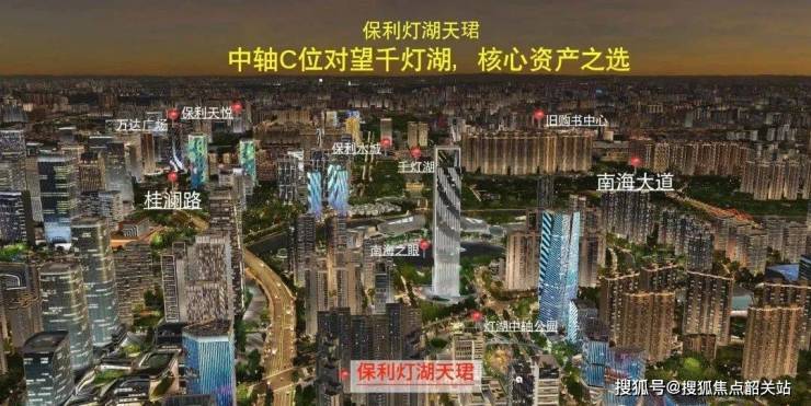 保利灯湖天珺位于佛山市南海区灯湖北延中轴公园旁,是保利集团倾力打造的高端住宅项目。项目总建筑面积约12.9万平方米,由9栋住宅组成,户型覆盖125至238平方米四至五房,顶复户型约404平方米,面向高阶家庭与奢享群体。项目依托千灯湖中轴公园稀缺湖景资源,并结合规划中的三大场馆及高端商业与公共设施,打造集生活、休闲、教育、文化于一体的全龄段人居社区。