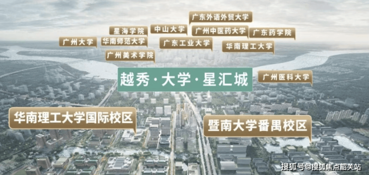 越秀·大学·星汇城位于广州国际创新城核心启动区,紧邻琶洲以南,是广深科技走廊与科创中轴的交汇点。项目周边汇聚13所高校、25万师生、47所研究院,形成“产学研商居”一体化产业大城。根据政府规划,国际创新城将打造年产值破千亿的科创极点,区域价值持续攀升。