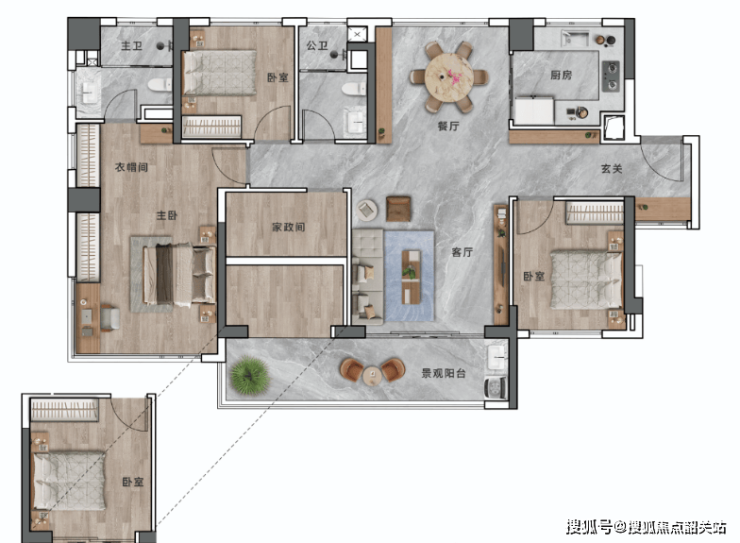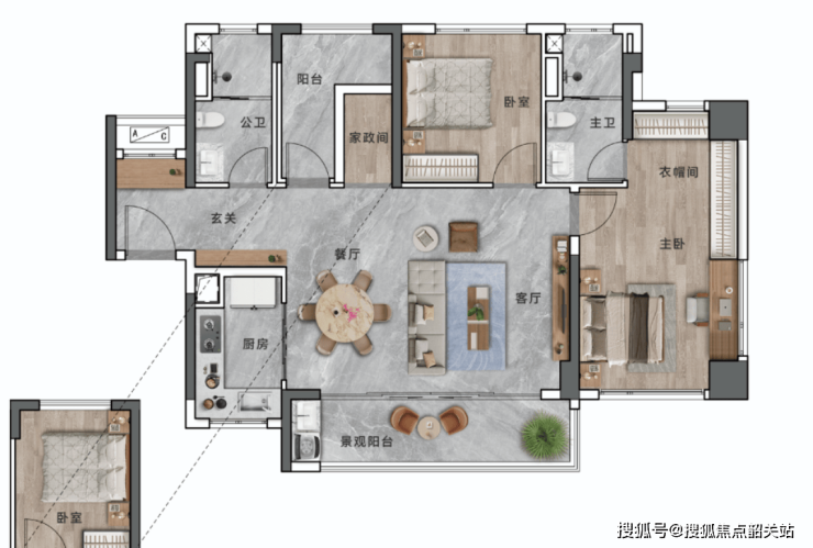 97㎡户型:三房两厅两卫,0过道浪费,约102%超高得房率,玄关双收纳空间,97㎡标配独立衣帽间,LDKB设计,无界聚合的家庭生活场景。