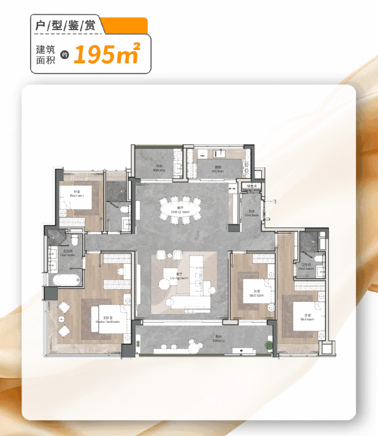 先来看建面约195㎡明星户型。