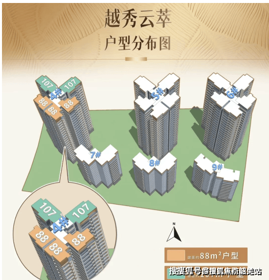 产品:88㎡四房南北通透,117㎡板楼南向面宽17.5米