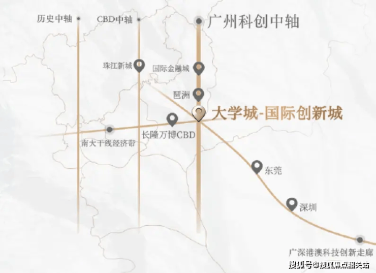 项目位于番禺大学城核心区,直线距离广东工业大学300米、广州大学500米,步行10分钟可达地铁4号线新造站(2026年延伸至佛山),驾车15分钟直达琶洲CBD。