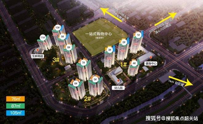 约 600 米范围内有 3 大商圈,嘉福商业广场、万民百货都在周边,板块未来还有超大型商业综合体。医疗方面,广州市第一人民医院 2020 年底签约进驻白云湖数字科技城。约 1km 步行可达 3000 亩白云湖,运动广场、篮球场等休闲场域应有尽有。