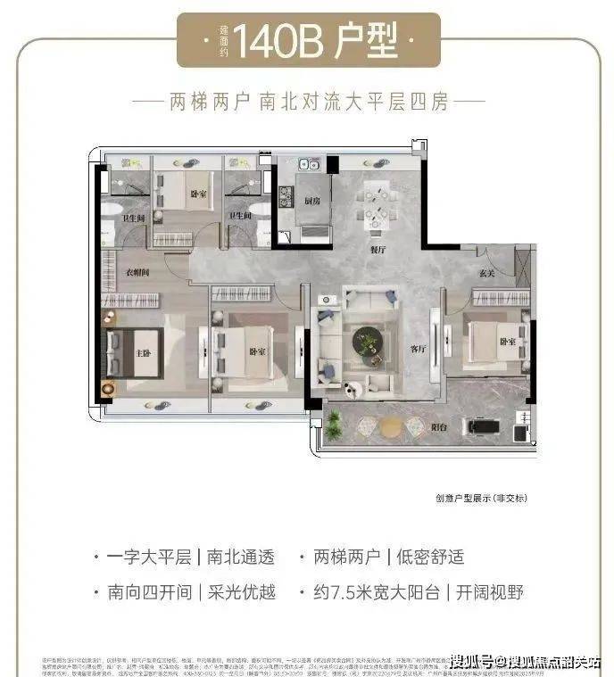 建面约140a㎡高定四房-景观视野佳,性价比至高· 少有高层景观,视野更开阔· 板式布局,南北对流阳光满格· 全屋精装,酒店式星级居所享受