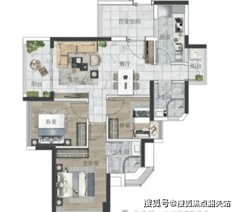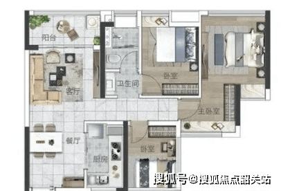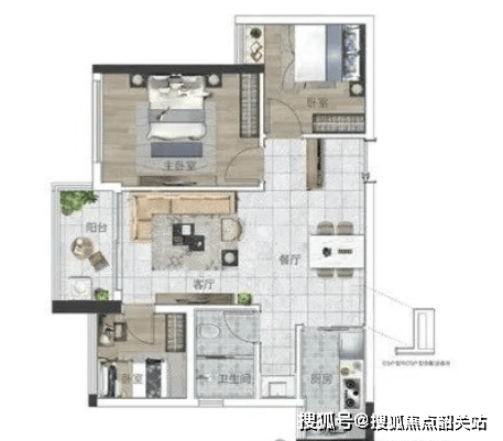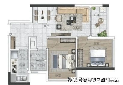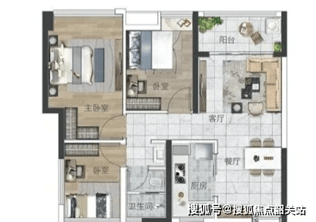 79㎡ 三房两厅一卫:阳光大主卧,一线临河视野开阔,L型厨房。