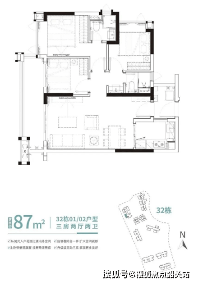 广地花园·观灏加推的新品32栋悦景楼座,提供多种面积段的选择:86㎡、96㎡、100㎡悦景三房。每个户型都经过精心设计,充分利用每一寸空间,确保多面采景和通透采光,打造全方位人性化居所。