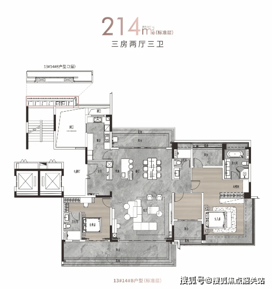 该项目户型设计极具亮点,主打 125-142㎡四房两厅两卫和 214-313㎡大平层,且所有房源均做到 270° 南向环幕瞰江,拥有大面宽、入户花园与南向跑道式阳台。户型使用率高达 103%,部分户型 4 面宽朝南看江,阳台宽达 2.2 米、长度 8-9 米,5.7 米宽厅尺度在市场上十分少见,还实现了南北对流,酒店式主卧三面采光。其中,125㎡入门级户型四开间朝南,搭配约 17㎡巨幕阳台;126㎡户型南北通透,采用阔绰横厅设计,8.3 米宽阳台与次卧相连形成跑道式阳台;142㎡户型配备入户花园,约 40㎡客餐厅开间 5.7 米,主卧套间配置衣帽间和 270° 大飘窗,能满足不同改善买家的需求。