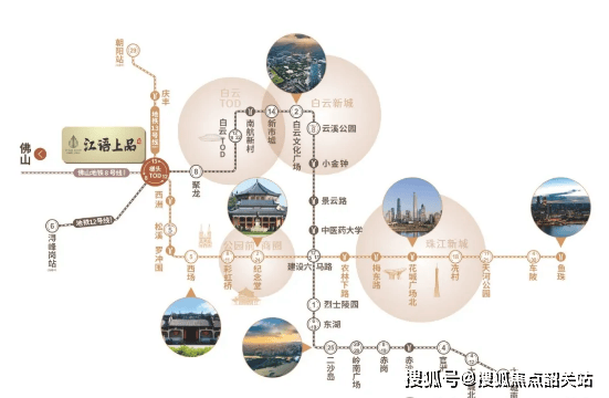 江语上品苑地理位置优越,交通配套十分完善。项目坐拥三地铁交汇,12 号线已通车,作为广州第一条无人驾驶地铁线路,可与十数条轨道线无缝换乘,直达大学城,连通白云、越秀、海珠、番禺四大区域;13 号线预计 2025 年通车,为广州东西走向黄金大动脉,串联白云、荔湾、越秀、天河四大主城区,直达广州行政、经济中心;佛山 8 号线处于规划中,未来将加速广佛同城化。此外,项目距白云站仅 2.7km,白云站作为亚洲最大城市枢纽,集高铁、普铁、城际、地铁于一体,还配备 6 万㎡枢纽商业。同时,项目毗邻正在施工的白云二线与棠槎路,双向 8 车道城市快速路通车后,5 分钟可到白云站,10 分钟直达白云新城,经增槎路转内环路 20 公里可达珠江新城,走沈海高速广州支线转科韵中路 27 公里可达琶洲,出行十分便捷。