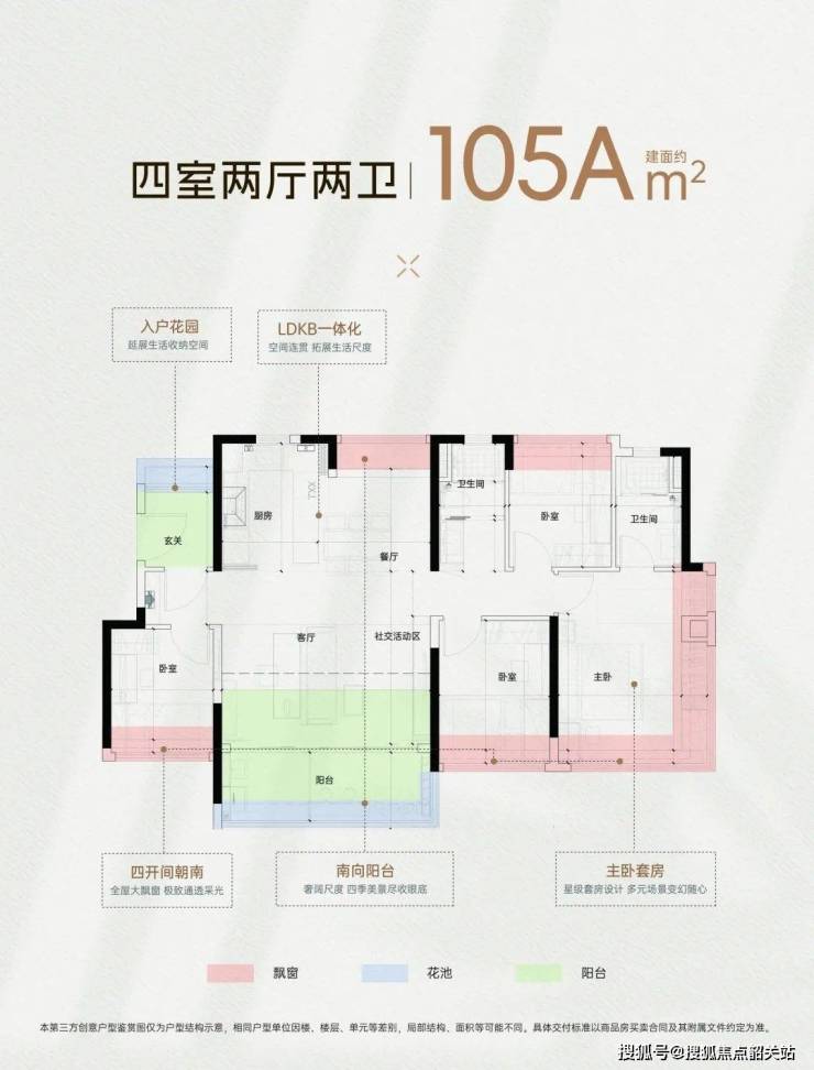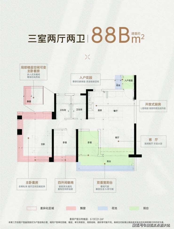 户型设计:建面约89-143㎡三至四房,全南向户型,得房率高达88%,主卧套房设计,满足三代同堂需求;