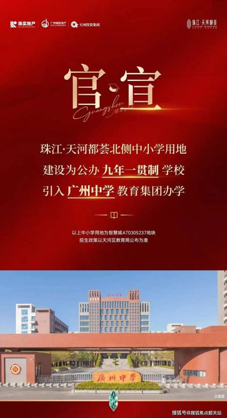官宣:珠江·天河都荟北侧教育用地建设为公办九年一贯制学校,引入广州中学教育集团办学!