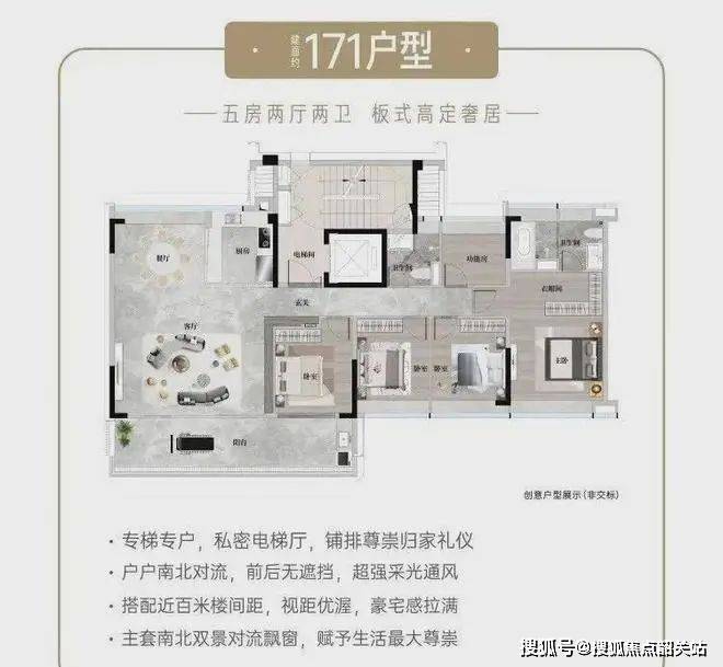 楼层方面为9-32层,有3梯3户和2梯2户,相当于专梯专户,主打板式住宅和低密宜居。