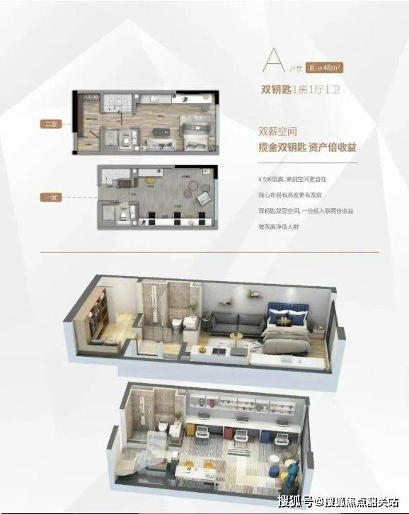 项目户型设计独具匠心,摒弃传统单过道,采用双环通走廊,提升通风采光。户户单边设计,保障私密性。A 户型为双钥匙设计,便于出租管理;C 户型接通燃气管道可明火,设有厨房。建面约 50 平户型,4.5 米层高,每层 1 房 1 厅 1 卫,双钥匙空间可买一租二,实现资产双倍收益。建面约 58 平户型,4.5 米层高,3.1 米开间阔绰客厅,三房布局且无暗房,带阳台,采光通风俱佳,配备燃气管道可明火,独立厨房连通观景阳台,适合三代同堂居住。