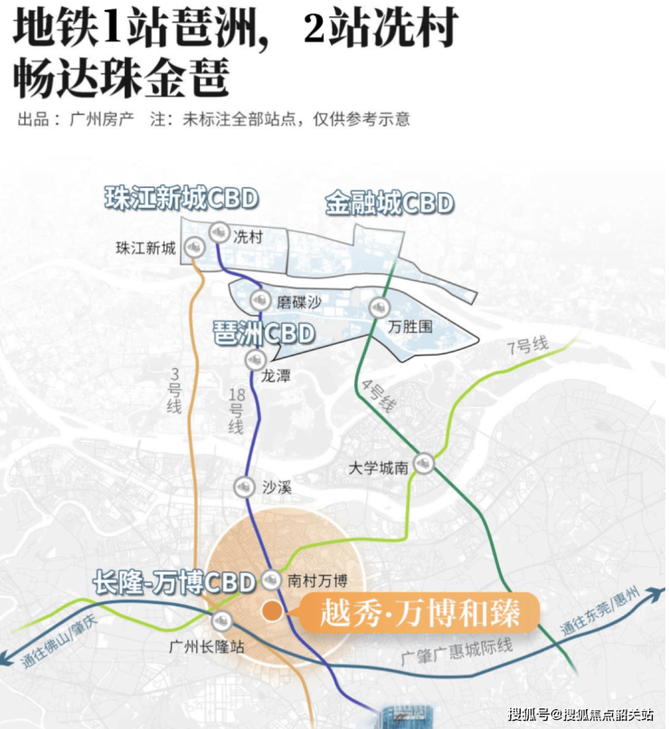 越秀万博和臻地处广州万博CBD核心地段,位于城市中轴线上,从二沙岛到天河北再到珠江新城,越秀在中心区域的布局一脉相承,打造城市中心核心价值。项目周边汇聚天河城、万达、四海城、海印又一城等十四大繁华商业体,同时引入山姆会员店、盒马鲜生等生活便利设施,实现商业、生活一体化。交通方面,项目距离18号线南村万博站约800米,同时可实现3号线、7号线、18号线的地铁交汇,快速接驳琶洲和广州南站,华快和新光快速路则提供无缝衔接珠城、金融城、琶洲等核心区域的通勤路径。良好的区位与交通规划,确保住户享受便利都市生活的同时,还能拥有墅级居住体验。