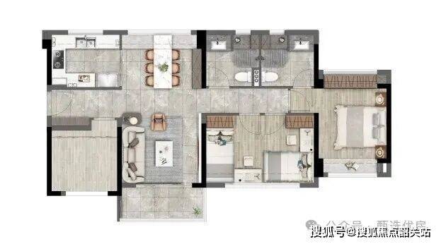 在户型设计上,泰丰·千语庭堪称“新青年户型专家”,推出了建面约83至108平方米的PRO创新户型,专为禅城新青年量身打造。A户型建面约83平方米,打造全能型三房,得房率高达91%以上,全屋三开间朝南,主卧带半卫,既实用又节省空间,是青年理想家的不二之选。B户型建面约89平方米,实现89平享四房,四开间朝南,创意百变双孩房设计,满足二胎家庭的成长需求,得房率同样出色。C户型建面约98平方米,拥有罕见的五开间朝南设计,得房率接近96%,U型厨房空间阔度,解锁幸福生活更多可能,是质感生活家的典范。D户型建面约108平方米,四房两厅两卫半,空间更加宽敞舒适,适合追求极致生活品质的家庭。每一款户型都经过反复推敲,充分考虑了居住的舒适性、功能性与美观性,让有限的面积发挥出无限的可能。泰丰·千语庭,用科学的设计,让家更大、更亮、更温馨。