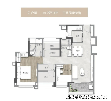 所有户型均注重实用性与舒适性,得房率高达95%,比同等面积多出两个使用空间。