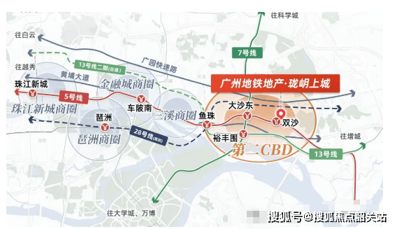 项目最大优势在于其真正的“地铁上盖”属性——直接建于地铁5号线双沙站之上,依托广州地铁开发优势,实现从地下车库经全室内通道直达站厅层,全程风雨无阻。搭乘5号线,5站即达金融城,10站抵达珠江新城CBD,通勤效率远超周边需步行1公里以上的竞品。这一无缝衔接设计,不仅提升日常出行体验,更强化资产流动性。对于在天河、金融城、琶洲工作的上班族而言,珑岄上城大幅压缩通勤时间,真正实现“多睡十分钟”的高效生活节奏。