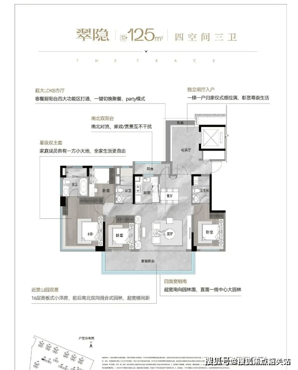 在售新规户型:72㎡三房两卫+125㎡双主套板楼,使用率高达130%