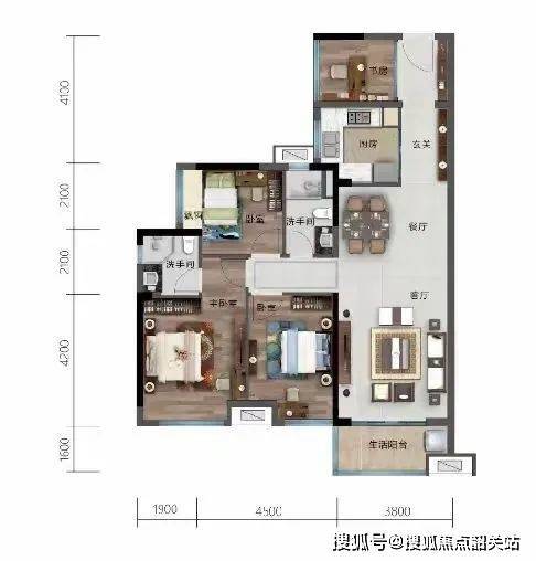 126㎡阔绰四房:4米阔厅,揽中轴园景