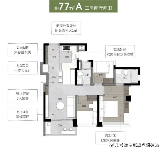 户型设计:超新规高使用率,77-135㎡三至四房满足多元需求