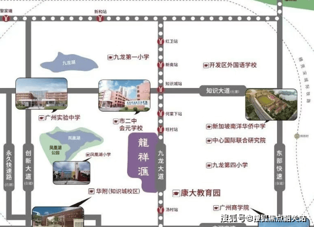 教育方面,康大龙祥汇的最大卖点之一便是其优质的教育资源。项目内配建的华南师范大学附属中学知识城小学已于2024年9月开学,并明确将康大龙祥汇纳入招生范围。加上小区内的启航幼儿园(公办),为双职工家庭提供了极大的便利。周边还有多所高等学府,营造了浓厚的学术氛围。