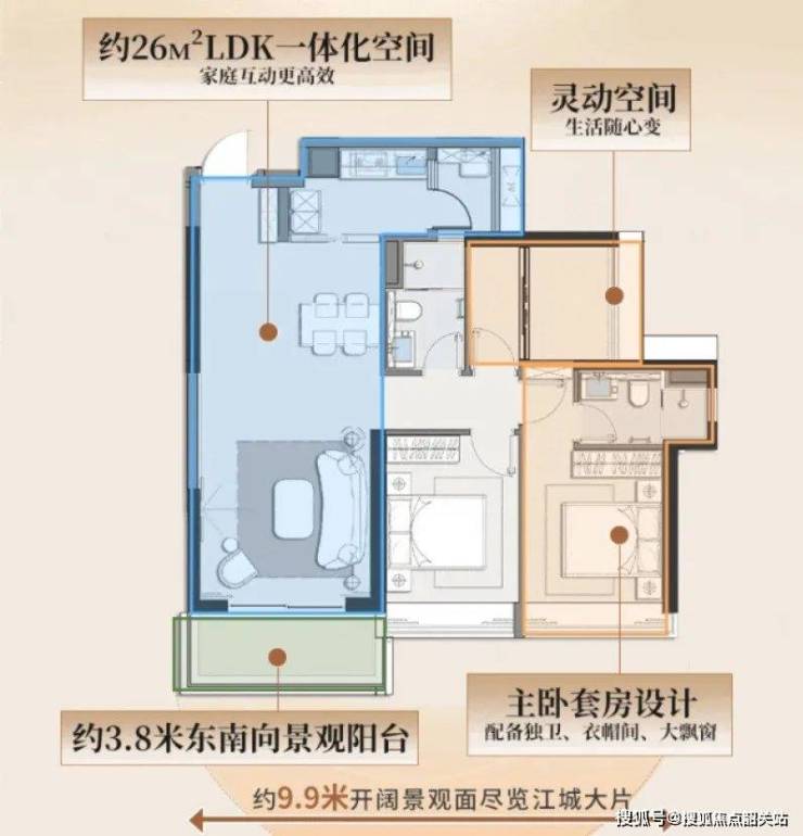 87平小户型:虽然空间有限,但通过少承重墙化设计和多功能布局实现了“麻雀虽小,五脏俱全”。主卧配有独立卫浴,次卧可灵活调整,适合年轻家庭或首次置业者。