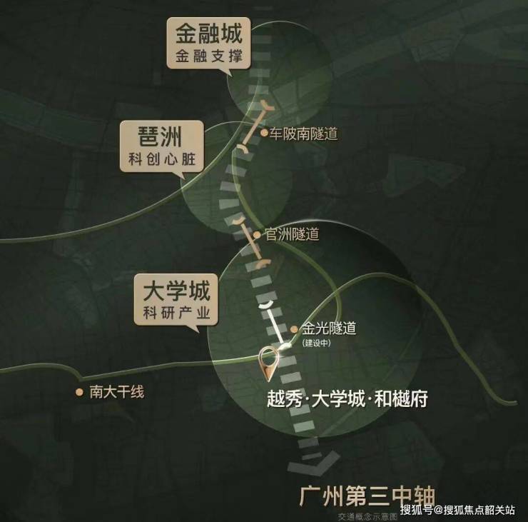 越秀·大学城和樾府占据着无可比拟的黄金地理位置,地处第三中轴与科创走廊两轴交汇之处。国际创新城作为广州科创中轴与广深澳科技创新走廊交汇的核心区域,是唯一具备斯坦福 + 硅谷“产学研商居”一体化模式的板块。大学城一期产学研人才汇聚,二手房价已达 7 万 +/㎡,成为番禺二手房价天花板,10 年涨幅超 200%,高出周边新楼盘 2 - 3 万/㎡,是广州少见的一二手倒挂板块。金光隧道开通在即,将快速衔接大学城一二期,此时入手项目正是绝佳时机,未来潜力不可限量。