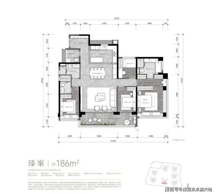建面约186m² 4房+𝟐厅3卫+灵动空间