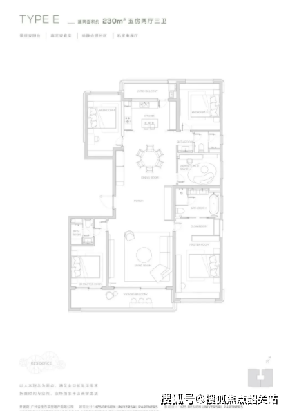 315㎡五房四卫:项目旗舰户型,巨幕宽厅、南北双阳台、独立保姆房,尽显塔尖生活格调。