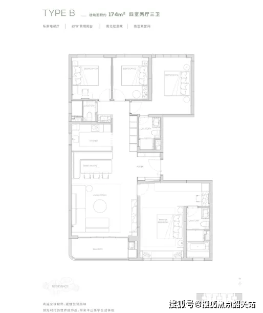 174㎡四房三卫:端户边厅布局,LDK一体化空间舒展,满足三代同堂或二胎家庭需求。