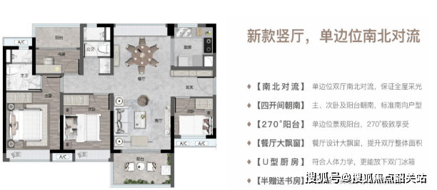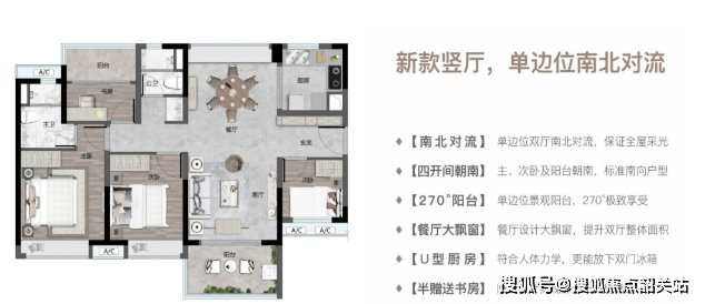113㎡四房二厅二卫:双厅南北对流,大飘窗设计,开阔视野。