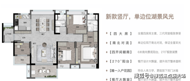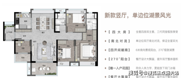 111㎡四房二厅二卫:南向三开间望湖,适宜家庭居住。