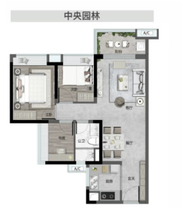 92㎡三房二厅二卫:全南采光,卧室带飘窗,空间利用合理。