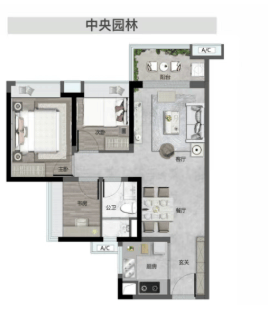127㎡四房二厅二卫:南向四开间,全屋极致采光。
