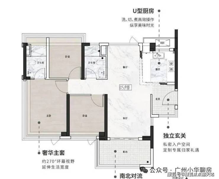 餐客厅一体化设计,连通约7.2米南向阔景阳台,亲友聚会无压力;主卧带步入式衣帽间,私密性更佳。