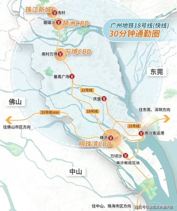 地铁18号线:项目直线距离已开通的18号线万顷沙站约2.5公里。18号线是高速地铁,目前已开通段(万顷沙至冼村),从万顷沙出发,最快2站到番禺广场,3站到琶洲西区(磨碟沙),4站直达天河CBD(冼村),通勤效率非常高。