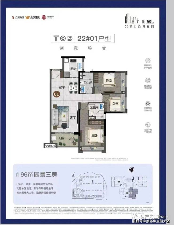 ③ 不到200万就可以上车三房,算是广州限购区内门槛最低的地铁盘了。