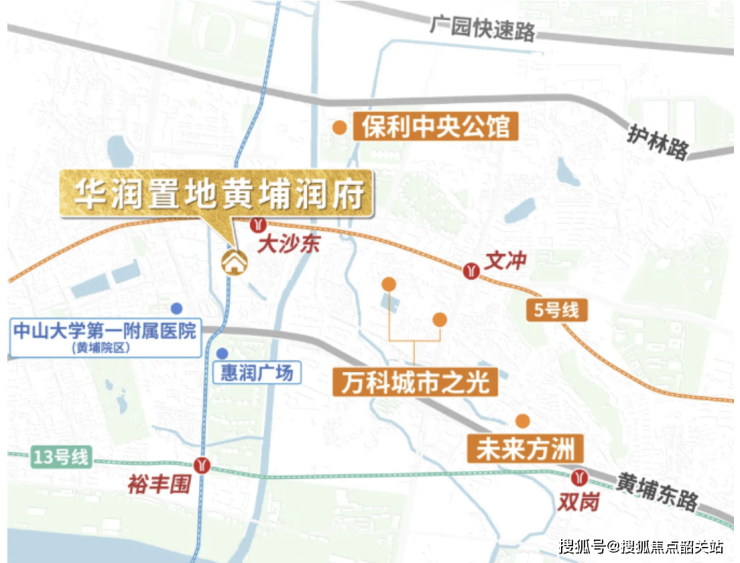 华润黄埔润府所处的地理位置极具战略意义,位于广州东进发展轴心的老黄埔板块,紧邻地铁5号线与7号线交汇的大沙东站,步行距离约300至400米,真正实现双地铁上盖的便捷通勤。5号线可直达金融城、珠江新城等核心商务区,7号线则快速连接科学城、长隆万博等产业与生活高地,构建起30分钟直达广州各大CBD的高效交通网络。项目毗邻黄埔大道与在建的鱼珠隧道,未来可通过快速路网无缝对接珠江新城、琶洲及海珠等区域。此外,周边规划有黄埔高铁站,进一步强化其作为湾区交通枢纽的地位。老黄埔作为广州历史悠久的工业与生活中心,配套成熟,城市界面稳定,而华润润府所在区域更是老城中心的黄金地段,周边生活氛围浓厚,商业、医疗、教育等资源触手可及,具备极强的居住便利性与资产保值潜力。