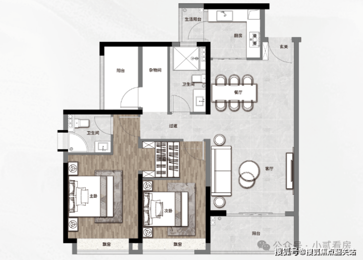 125㎡四房两厅两卫,正南北横厅户型,双阳台南北对流,超6m超宽景观阳台,享大夫山湖头排景观;