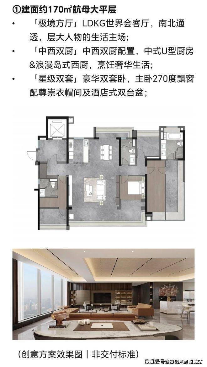 建面约170㎡四房:双套房设计,中西厨分离,总价约935万。