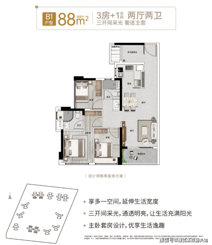 对于追求更高生活品质的刚改家庭,88㎡3+1房提供了横厅与竖厅两种设计选择,满足不同审美和居住习惯的需求。横厅户型采用了当下最流行的设计理念,南北对流,约11米的四开间朝南,让阳光毫无保留地洒满整个客厅和卧室。这种大开面的设计,不仅采光极佳,更让视野变得开阔通透,居住的舒适度大幅提升。而竖厅户型则主打南向望园,楼间距近140米,确保了日均日照超过6小时。想象一下,清晨第一缕阳光透过窗帘唤醒您,午后坐在沙发上看着孩子在楼下花园嬉戏,这种画面是多么温馨。88㎡的户型总价365万起,性价比极高,既满足了家庭人口增长的需求,又保持了经济的合理性。